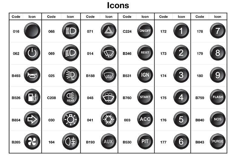 The Icons shown in the image at the top of this page are the ones we carry in stock at Hardwire Electronics. Should you require an icon we don’t have on stock, the full list of available icons can be found in the downloads section of our website here in the ‘Keypad Icon List’ folder.